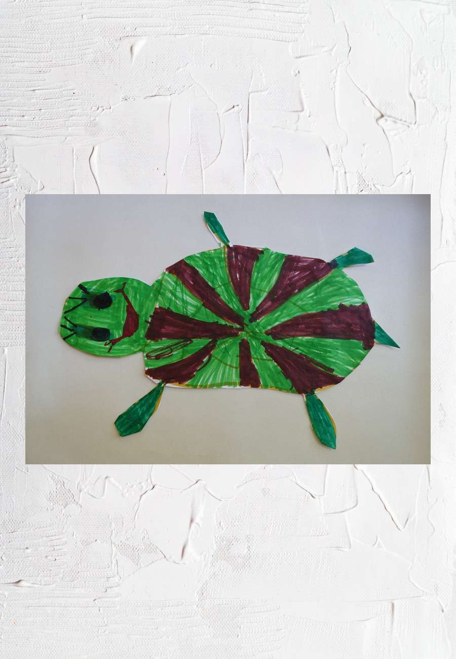 Mit Filzstiften gemalt und ausgeschnitten, sign., Größe 28 cm, Alter 5 Jahre.