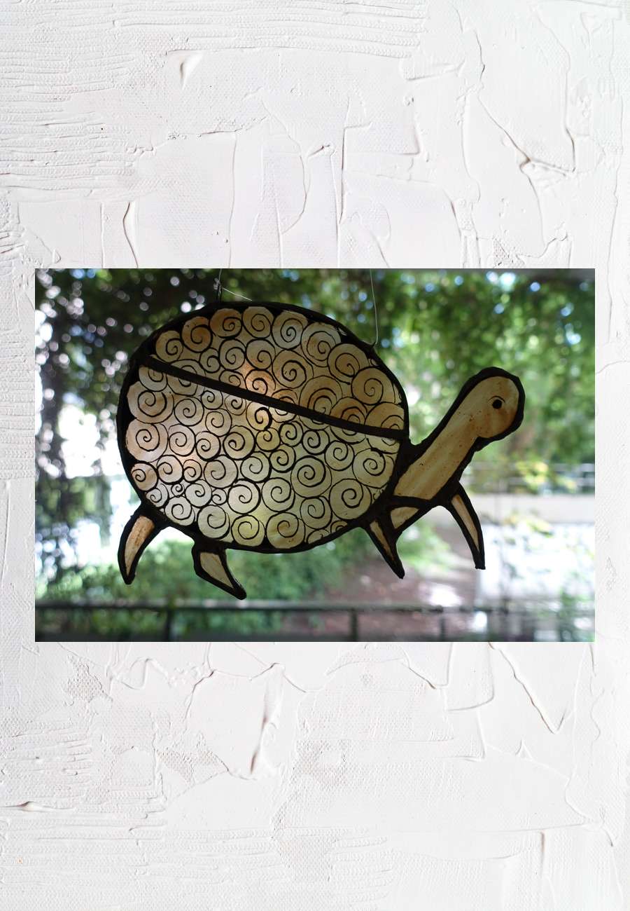 Fensterbild, in Blei gefasst und handbemalt, Größe 16 cm.