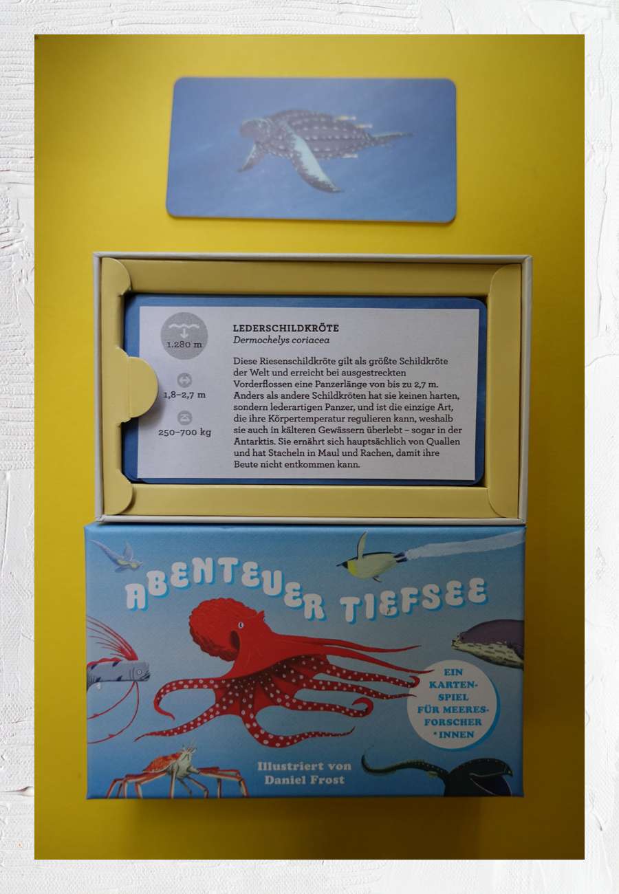 Kartenspiel, die 50 Tierkarten enthalten jeweils auf der Rückseite gute Informationen, z.B. zu Größe, Gewicht oder Lebensraum, ab 6 Jahre, in