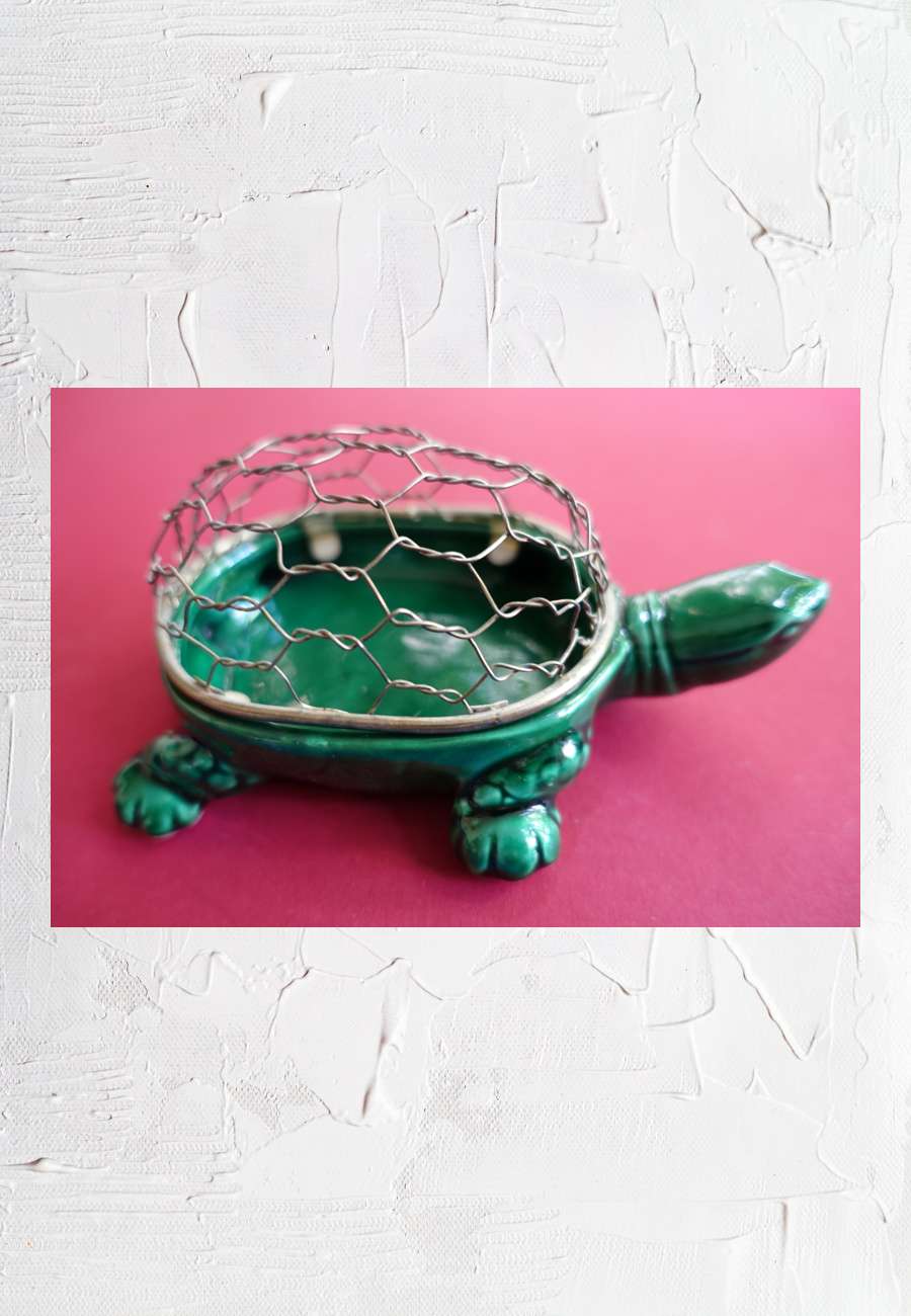 Porzellangefäß mit handgeflochtenem Panzer aus Draht, Größe 15,5 cm.