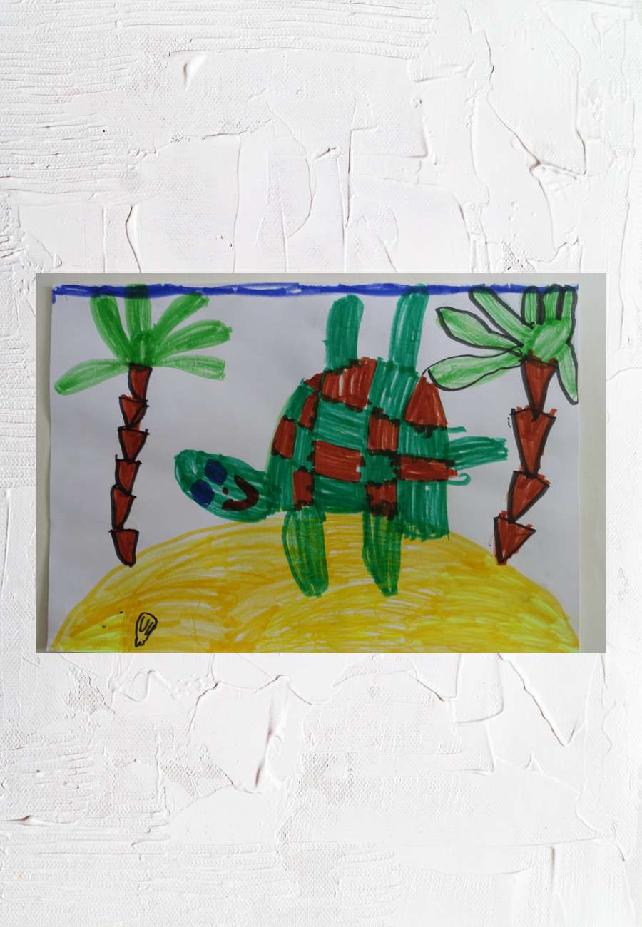 Mit Filzstiften gemalt, Format DIN A 4, sign., Alter gerade 6 Jahre.