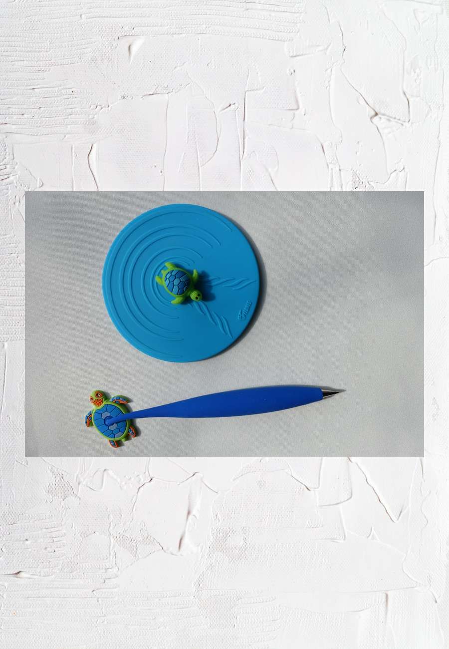 Silikon-Scheibe, zur Abdeckung eines Glases bzw. Kruges (z.B. gegen Wespen) auf dem Balkon oder im Biergarten, Durchmesser 10 cm. Der Kugelschreiber