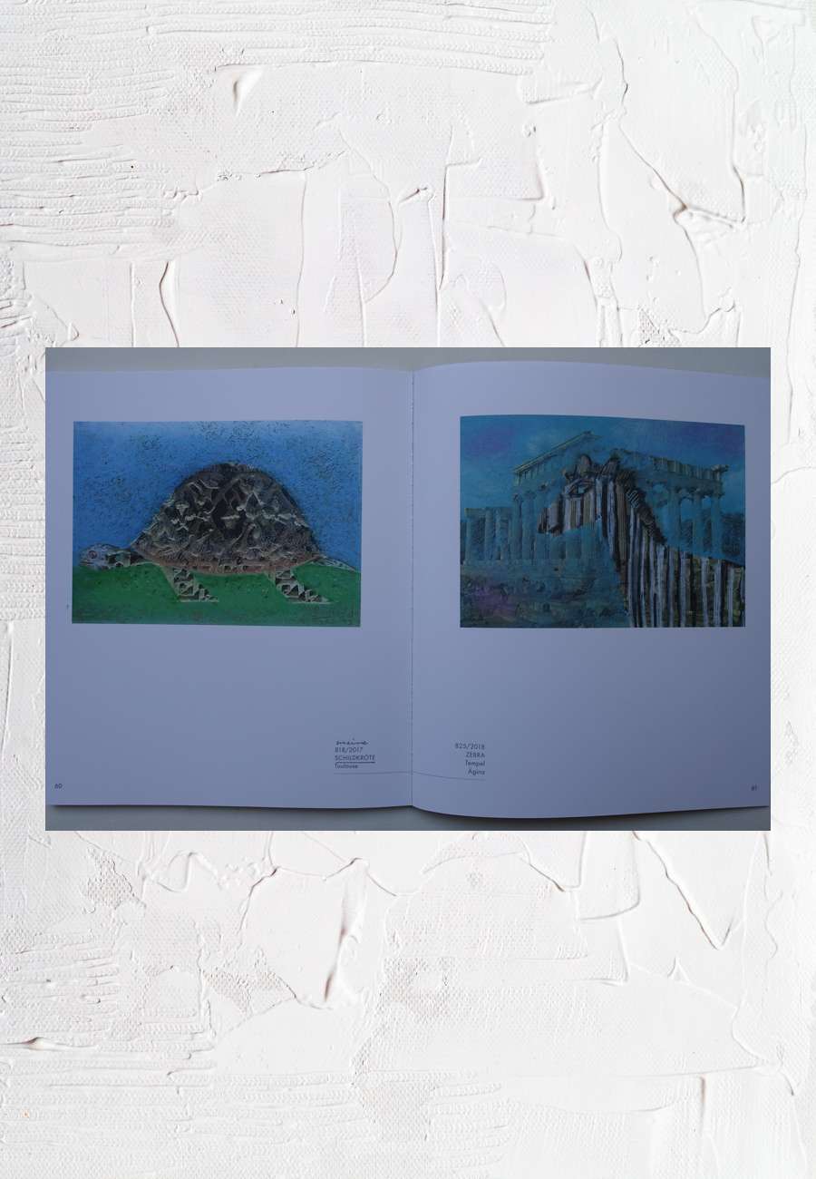 Der Katalog zur Ausstellung "Fein bist du, Sicht!" (Graz) von 1.000 übermalten Postkarten, Text Lea Watzinger, enthält zwei meiner drei Originale; neben der Abbildung links (Kapitell aus dem 12. Jhd.) auch das schöne Motiv von "Le Mont-Saint-Michel".