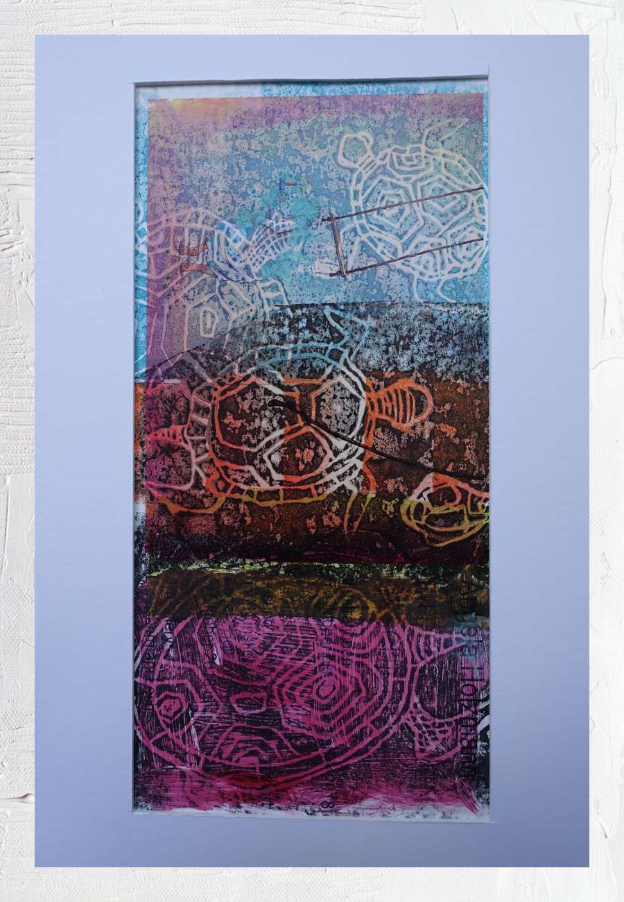 Unikat, Tiefdruck, in beschichtete Kartonplatte mit Kugelschreiber eingeritzt, Acrylfarben, sign., Format ca. DIN A 4 (mit Passepartout).