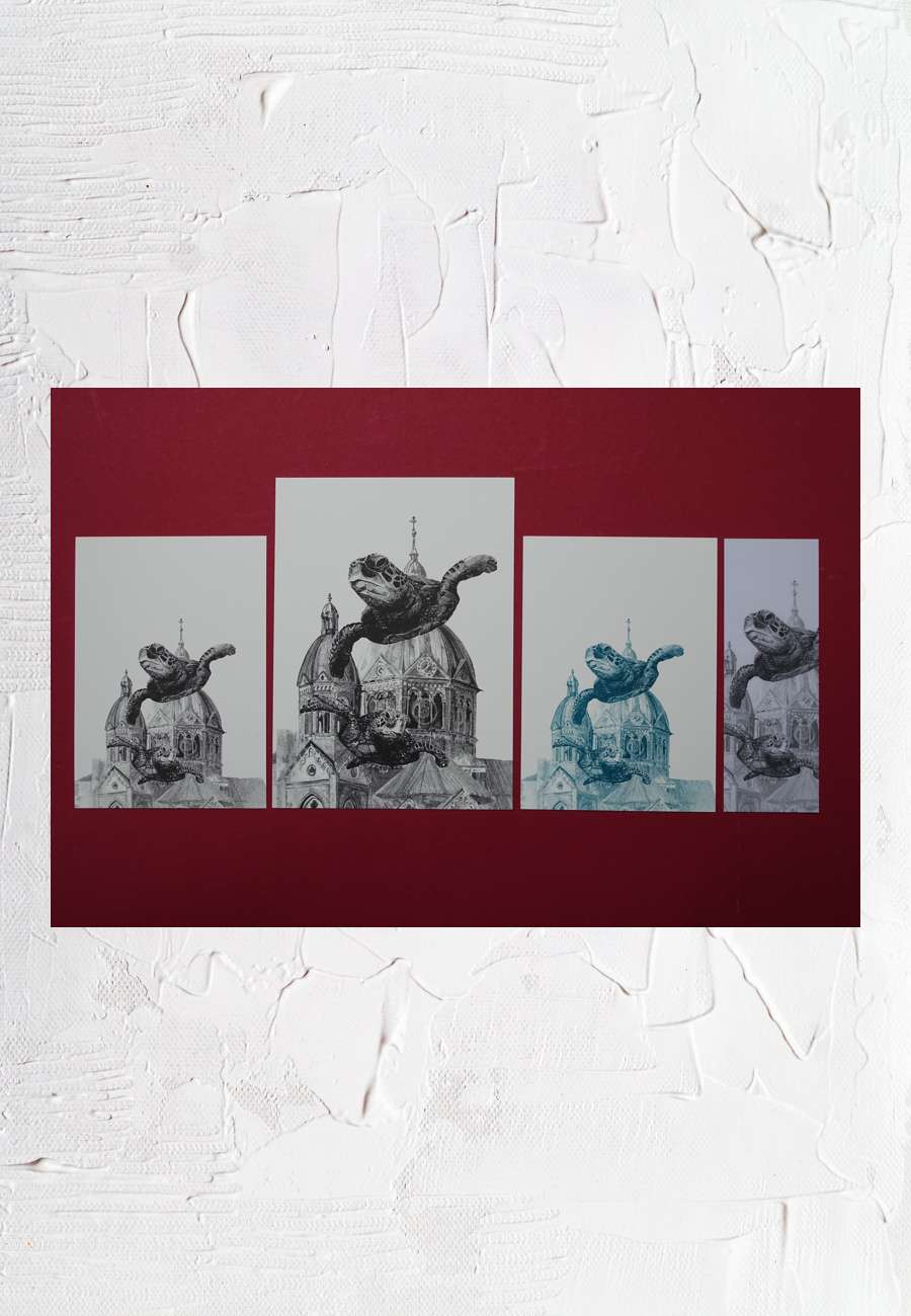 Die Künstlerin hat vom Original (eine Auftragsarbeit in meinem Besitz) diverse Postkarten und ein Lesezeichen anfertigen lassen.