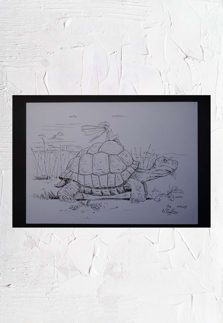 Auftragsarbeit, Tuschezeichnung (Unikat), sign., Format 42 x 29,5 cm. Der freiberufliche Grafiker hat in Hamburg Illustration studiert und sich mit Cartoons, Comics und Karikaturen berühmter Persönlichkeiten einen Namen gemacht. In sein Buch "Große Worte große Köpfe" zeichnete er mir ein flottes Porträt