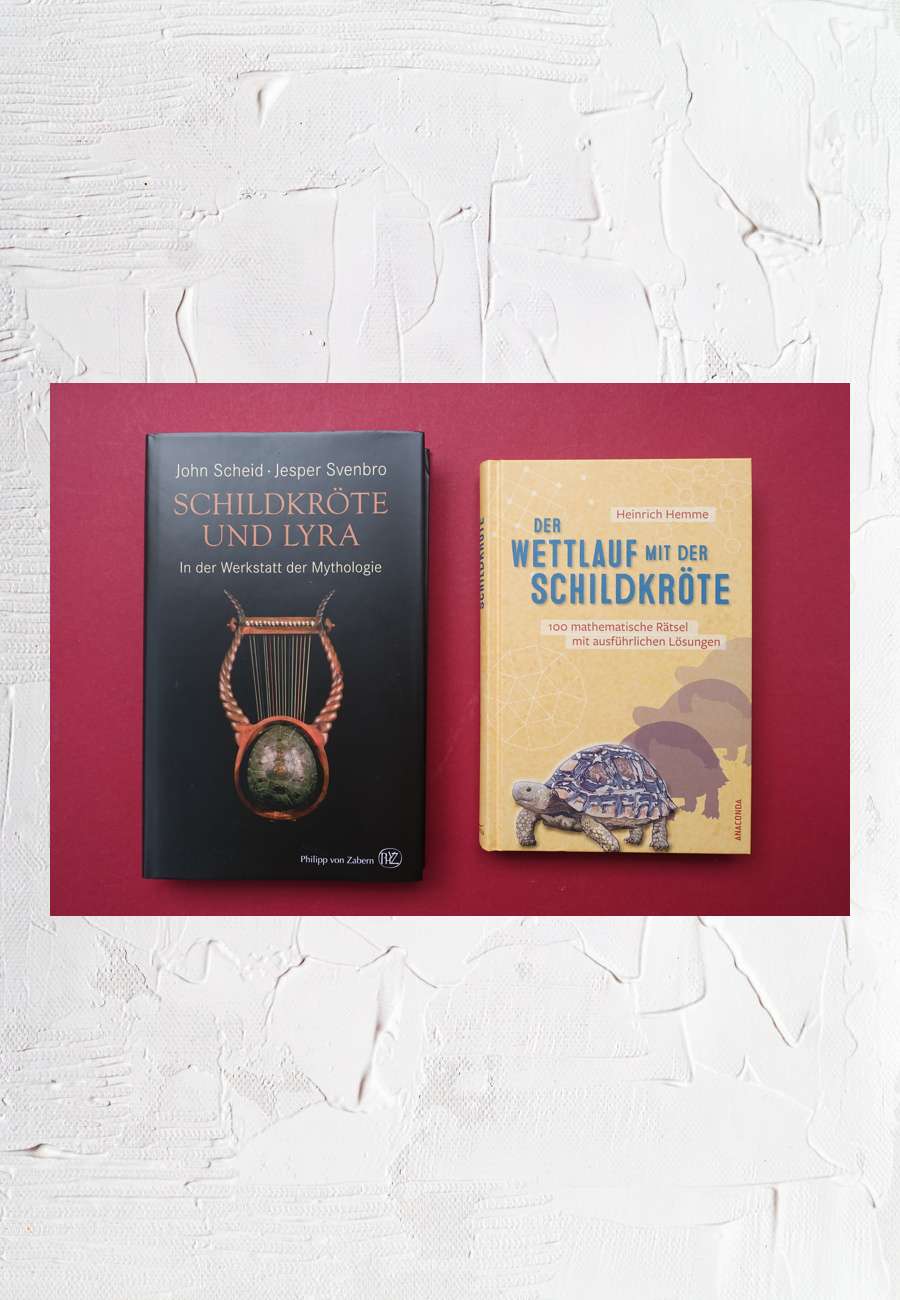 Zwei weitere Bücher kreisen um mein Lieblingsthema. Das rechte Buch beinhaltet u.a. den Wettlauf von Achilles mit einer Schildkröte. Diese Paradoxie hat sich der griechische Philosoph