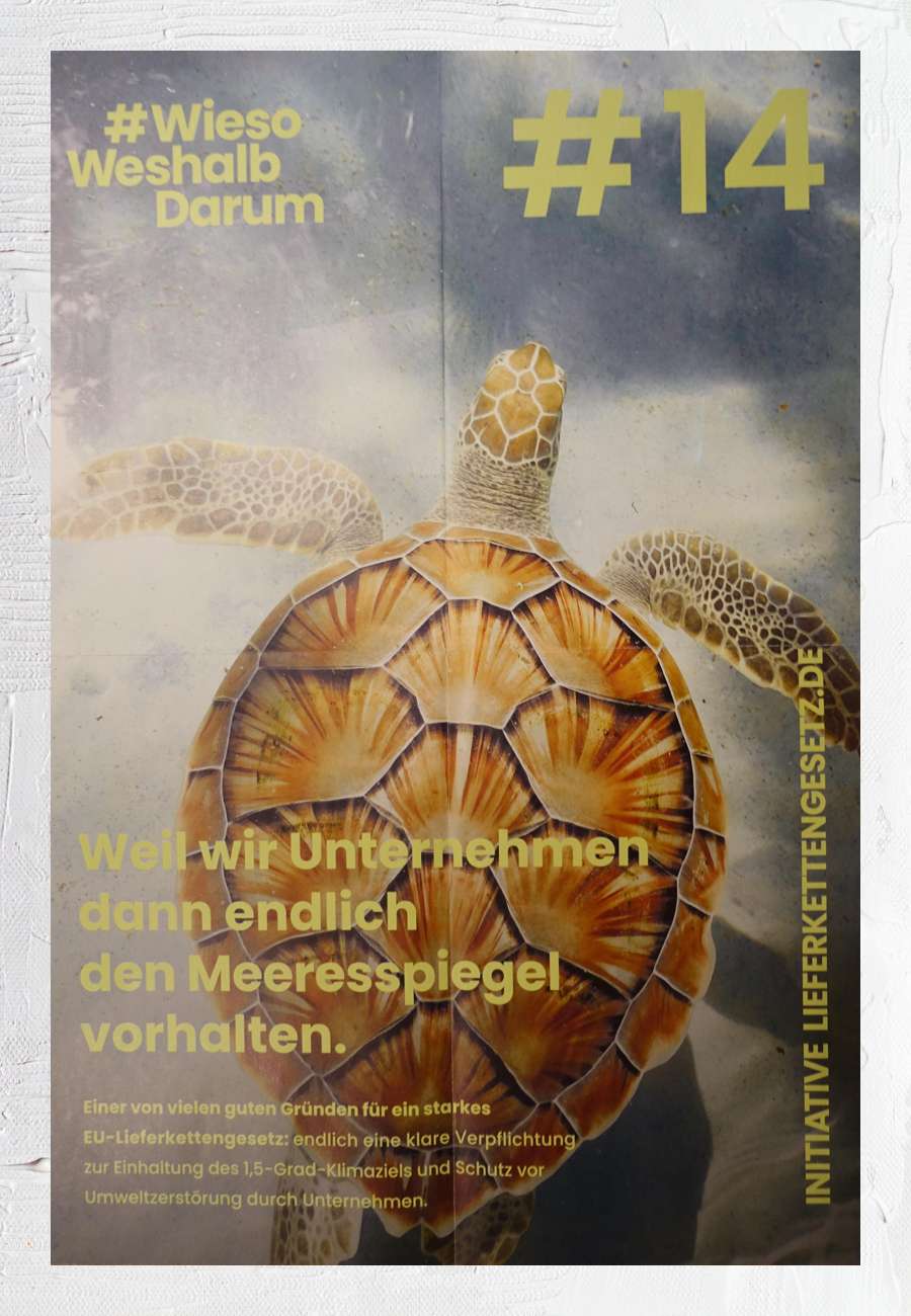 Das kritische Plakat, Format 60 x 42 cm, ist optisch recht anschaulich. Viele Organisationen in Deutschland haben sich für das Lieferkettengesetz (verabschiedet 2021) engagiert. Es wird jedoch allein in Europa gegen eine starke Wirtschaftslobby nur schwer durchzusetzen sein. Dies gilt zudem insbesondere bei der Einfuhr von Produkten, die beispielsweise aus Asien und Afrika kommen. Zur Werbung gibt zusätzlich eine Postkarte mit dem gleichen Motiv.
