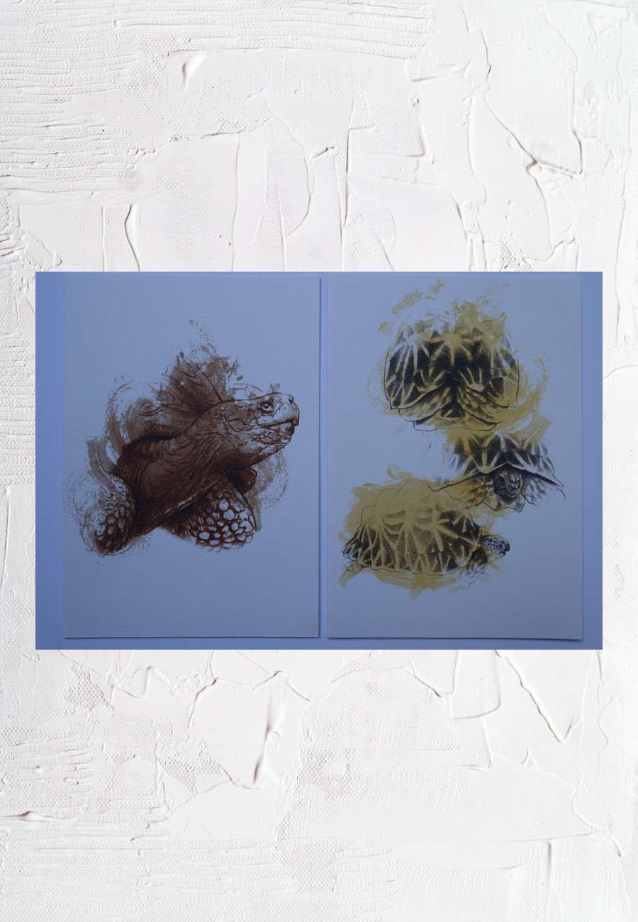 Zwei feine Zeichnungen auf Karton, Tusche mit Aquarell.