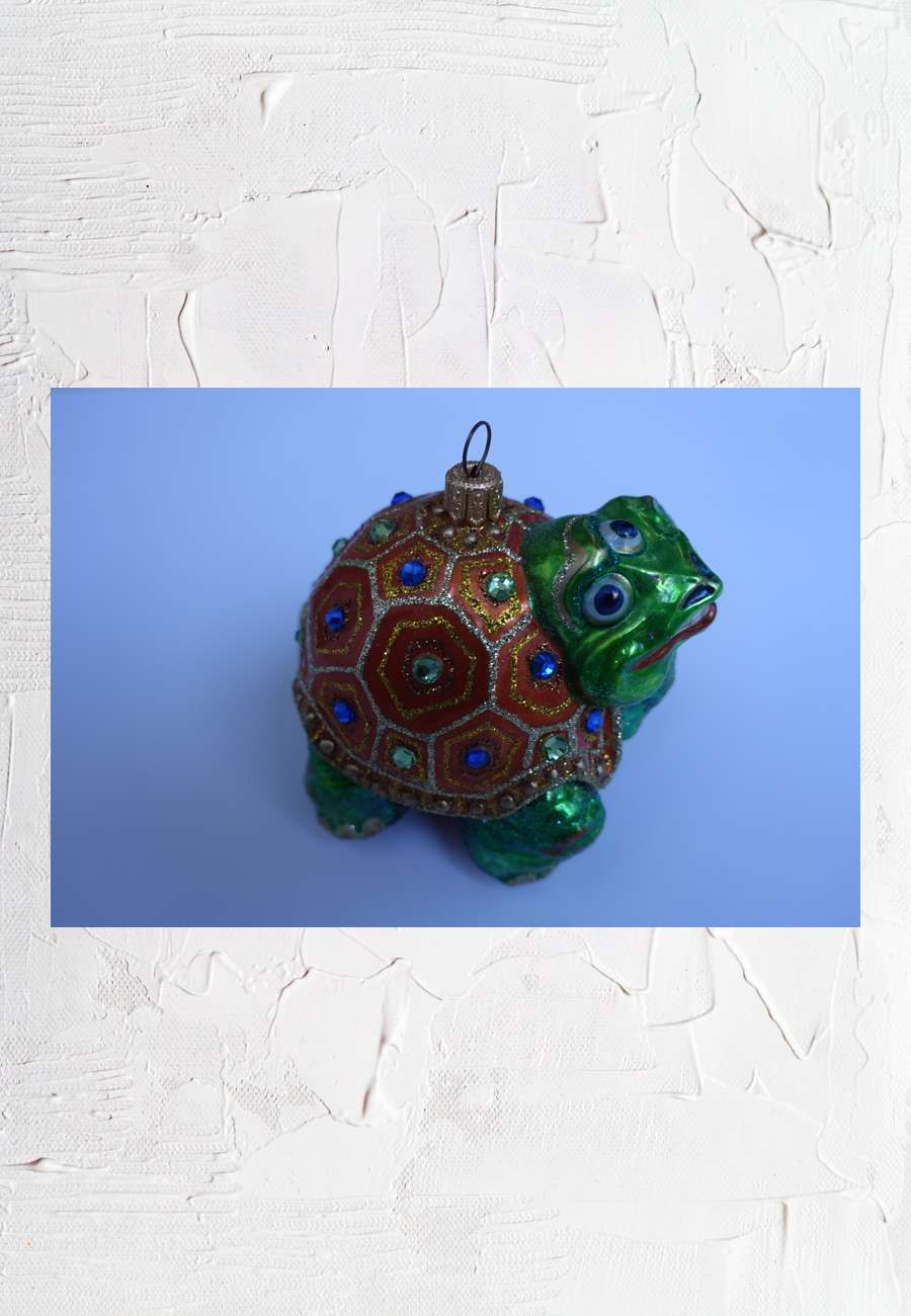 Christbaumkugel, mundgeblasen, mit farbig eingelegten Glassteinchen ("Kitsch wärmt"), Swarowski Kristallwelten (Wattens), ca. 9 x 9 cm. Am Weihnachtsmarkt in München (Marienplatz) werde ich als langjähriger Kunde bei Frau Wartenberg fast immer fündig.