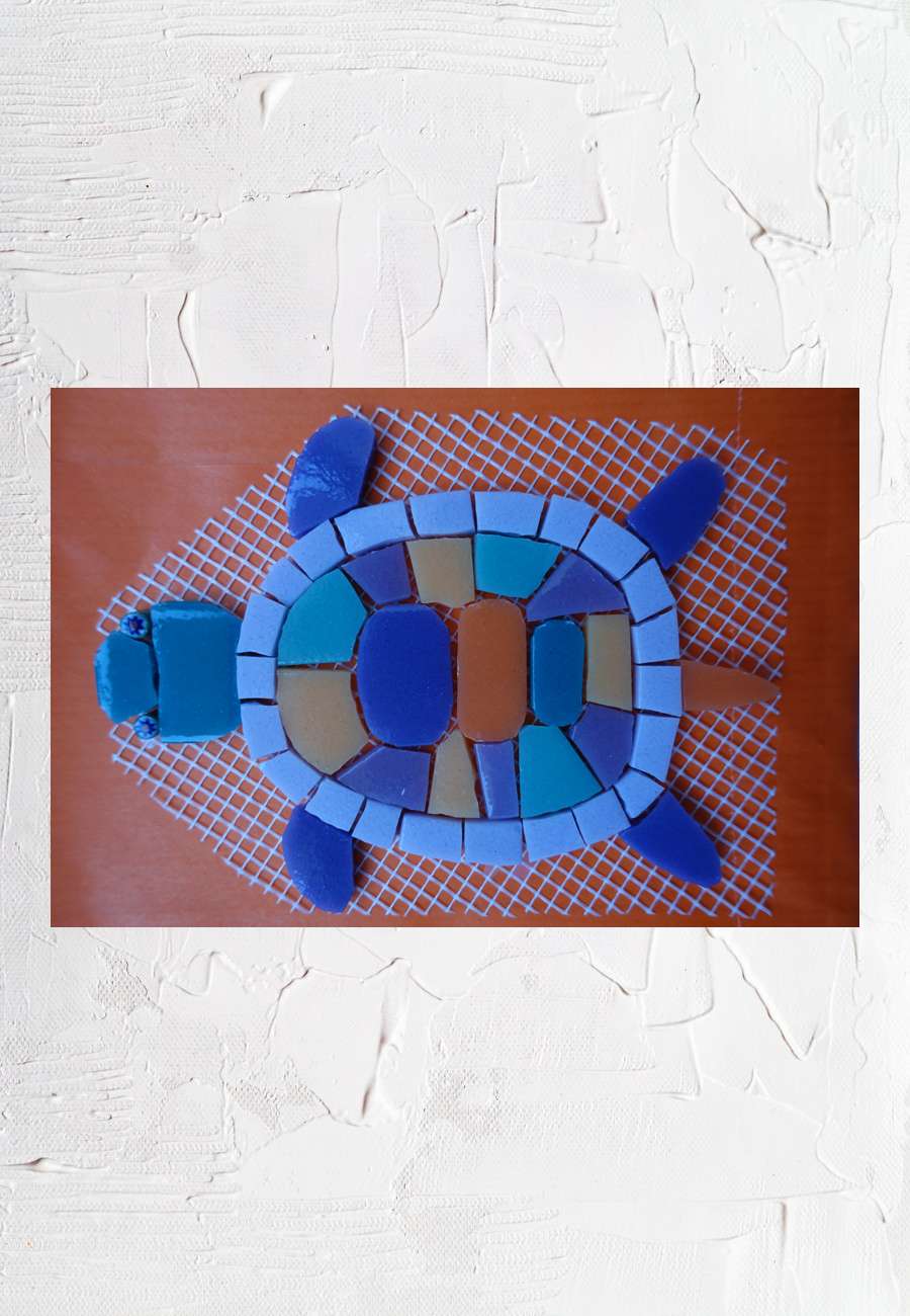 Mosaik aus 46 farbigen Glasteilchen, auf einem Netz, Größe 10,5 cm, Atelier 4 "In mosaique", in Etel.