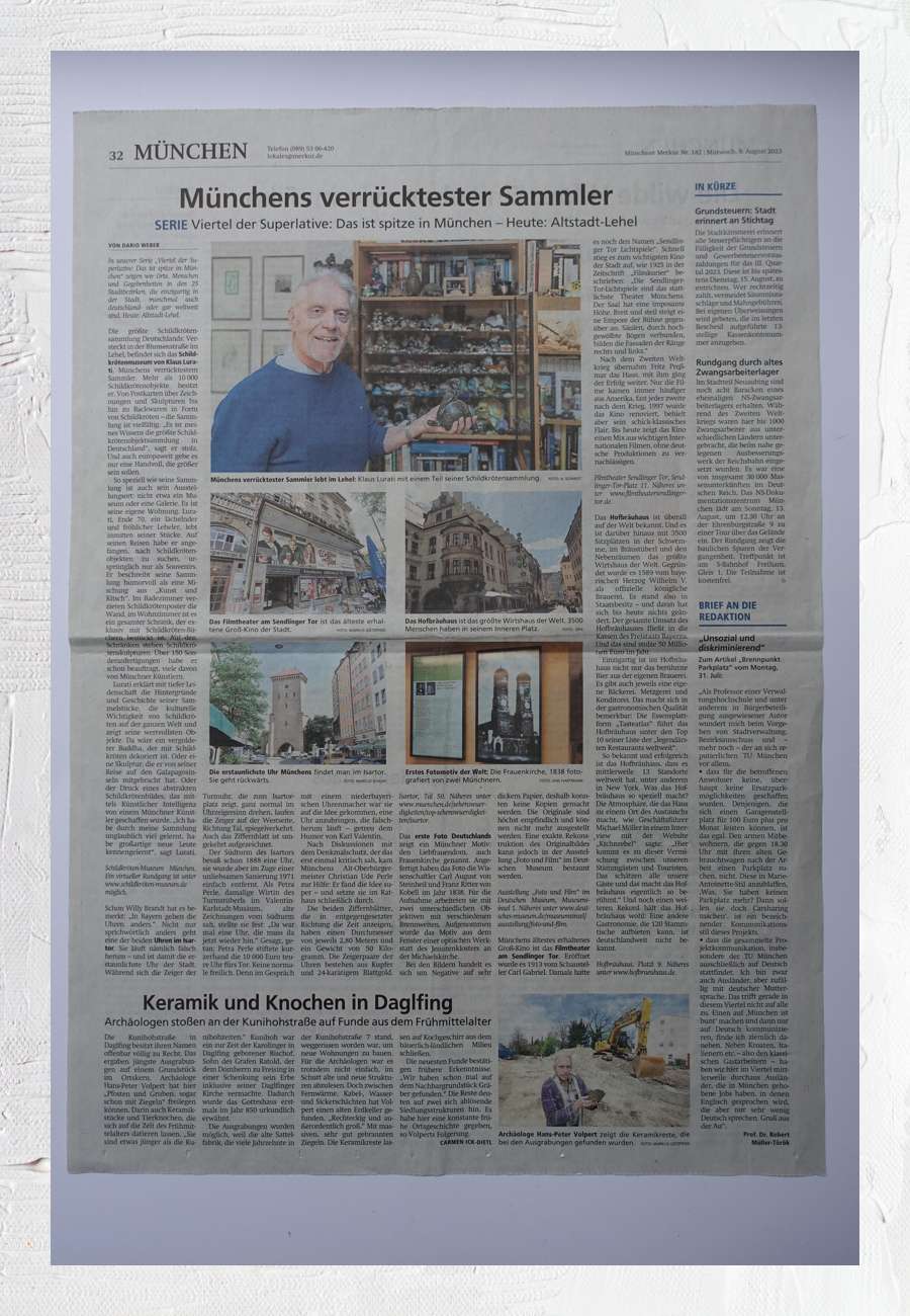 Zeitungsartikel im Münchner Merkur (9. August 2023), auf Anfrage von Dario Weber. Der Bericht enthält kleine Fehler, z.B. "verzieren im Badezimmer nicht Schildkrötenposter die Wand", sondern die gesamte Decke wurde von LOOMIT mit einem erstklassigen Graffiti gestaltet (s. virtuelles schildkröten museum.de / Suche: Loomit). Zeitgleich erschien der Artikel gekürzt (aber nahezu fehlerlos), mit einem etwas anderem Layout in der Boulevard-Zeitung t z , dafür mit der sehr fett gedruckten Überschrift "Der Herr der Schildkröten". Auf diesen Abdruck wird hier jedoch verzichtet.