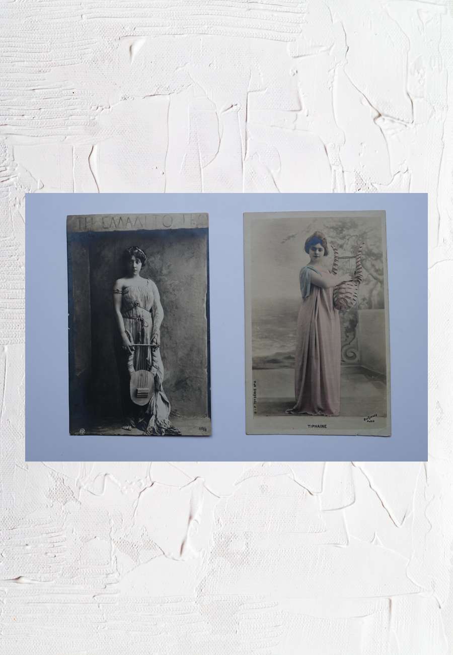 Rechts: Die schöne "Tiphaine", mit einer Lyra. Resonanzboden ist ebenfalls ein Schildkrötenpanzer nach altem Vorbild. Fotograf Reutlinger, Paris (S.I.P. 79,