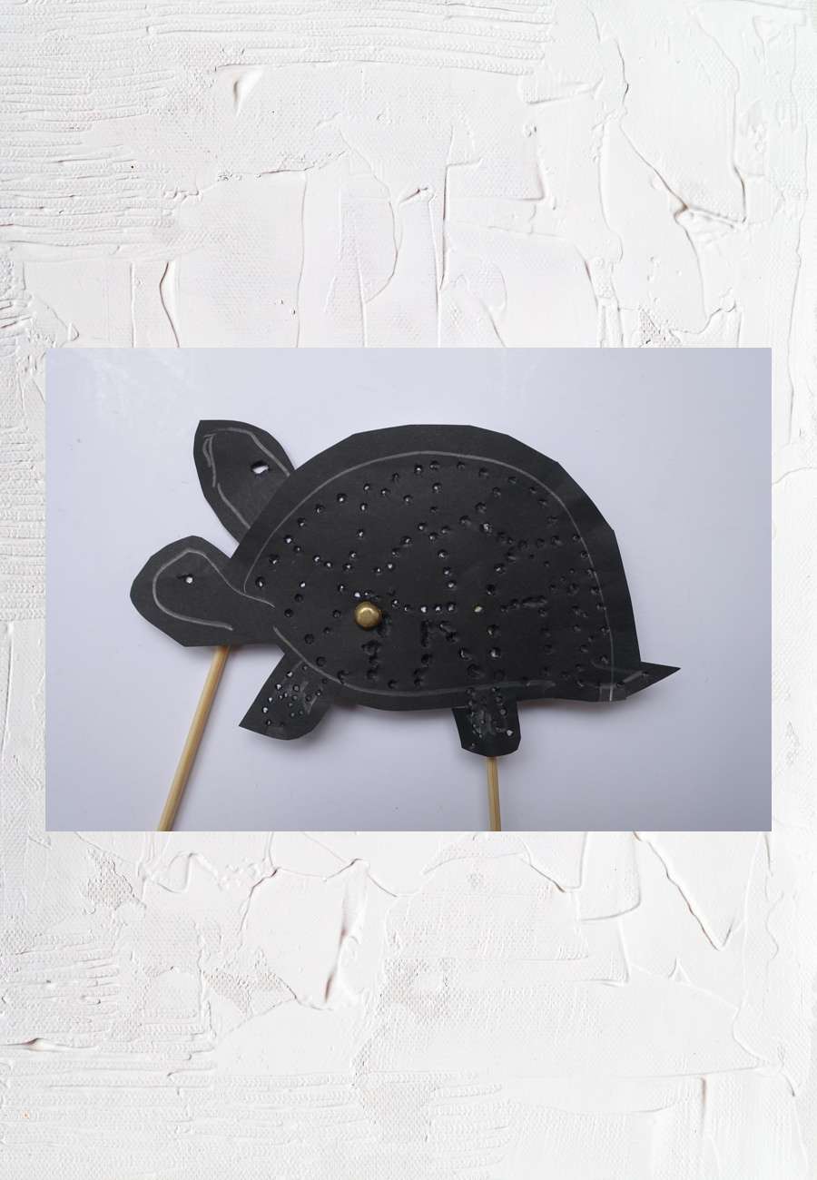 Schattenspiel-Figur mit beweglichem Kopf, entstanden in der Ausstellung "Instrumentalized!" (Rathausgalerie München, 2024), aus Karton geschnitten,