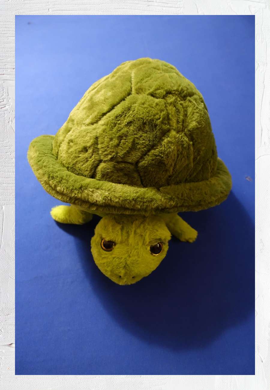 Kuscheltier u n d Handwärmer (Muff), Glasaugen, Plüsch (100 % Polyester), Fa. Breba (Niederlande), made in China, Länge 40 cm, Höhe 25 cm.