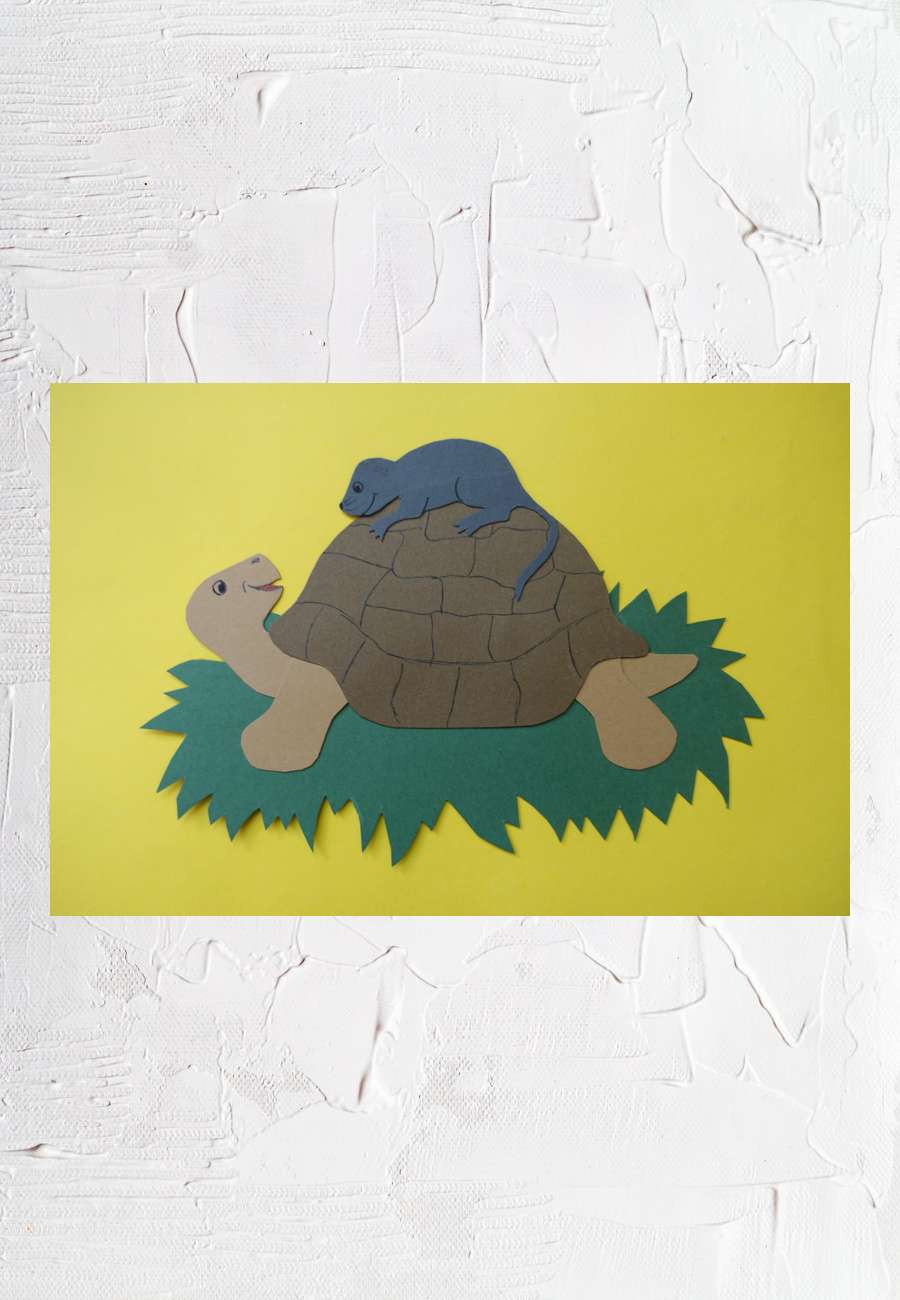 7-teilige Collage aus Karton, von Hand vorgezeichnet, rückseitig mit einer Widmung für Lia, sign., 18,5 cm.