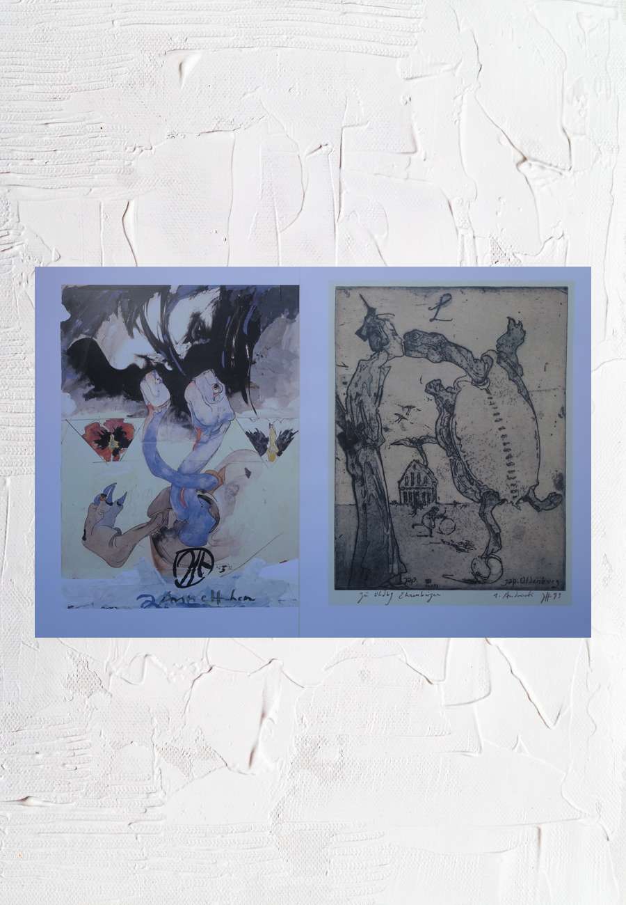"Japan - Oldenburg", beide Arbeiten von 1992). In diesem Jahr wurde er Ehrenbürger der Stadt Oldenburg. Er war ein ruheloser und furioser Zeichner und Bewunderer japanischer Holzschnitte. In den spannenden Katalogen "Ich bin ganz Auge" und "Japanische Ambitionen" (Plakate) gibt es aber keine weiteren Schildkröten-Motive. Unter "Suche: Janssen" sind die beiden anderen Werke zu finden.