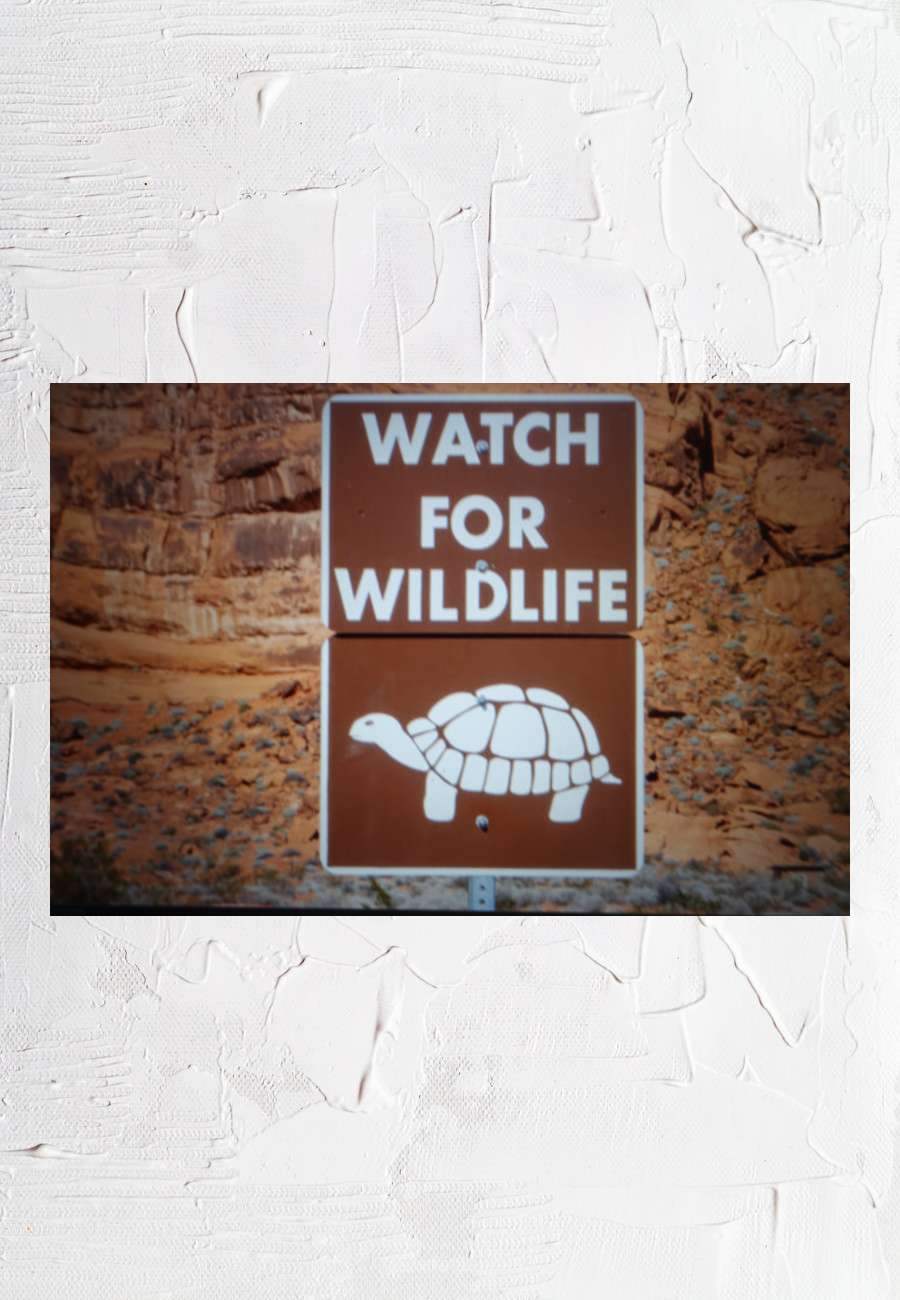 Das Straßenschild im Outback (Bezeichnung für riesengroße und sehr dünn besiedelte Gebiete Australiens) soll auf den Artenschutz wildlebende Tiere aufmerksam machen, z.B. der Kurzhalsschildkröten. Daneben gibt es dort noch Schlangenhalsschildkröten (deren Hals ist teilweise länger als der Rumpf).