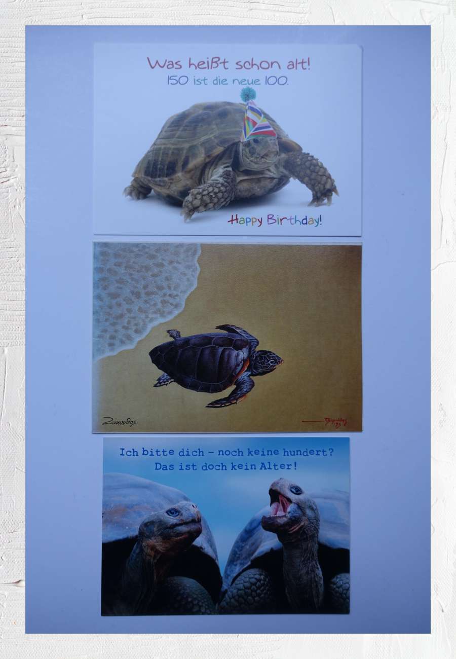 Das Schildkröten-Motiv auf Karten ist nahezu unerschöpflich.