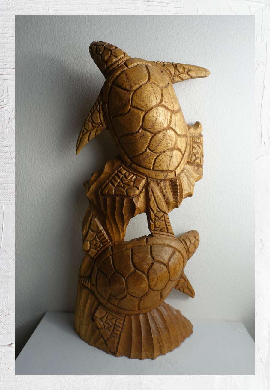 Die Skulptur aus Suar-Holz (tropische Akazienart), handgeschnitzt in Bali (Indonesien), Höhe 31 cm.