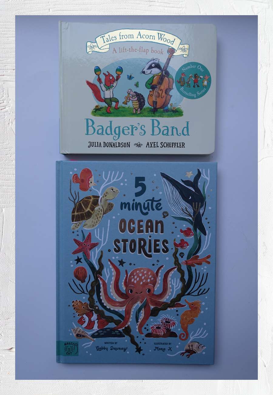 Beide Bücher in englischer Sprache. Das Buch, illustriert von Axel Scheffler, ist in der ganzen Aufmachung voll identisch mit der schon beschriebenen deutschen Version "Der Dachs spielt super Kontrabass", unterscheidet sich aber im hier vorliegenden Originaltext von Julia Donaldson deutlich. Im unteren Buch sind neun Meerestiere ausführlich beschrieben, mit einem eigenen Kapitel zu Schildkröten "The Salty Tears of the Sea Turtle" (10 von insgesamt 96 Seiten), Erstauflage 2024 in London, Manufactured in China.