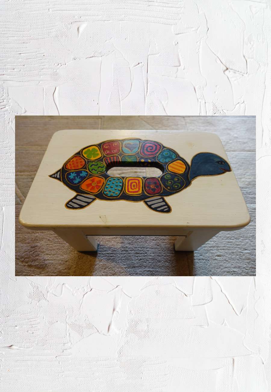 Auftragsarbeit, Hocker, individuell bemalt (Acryl mit Treppensiegellack), sign., Größe 40 x 25 cm.