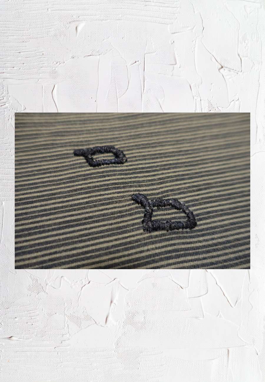 Kleine Stickerei auf dem Oberteil eines Schlafanzugs.