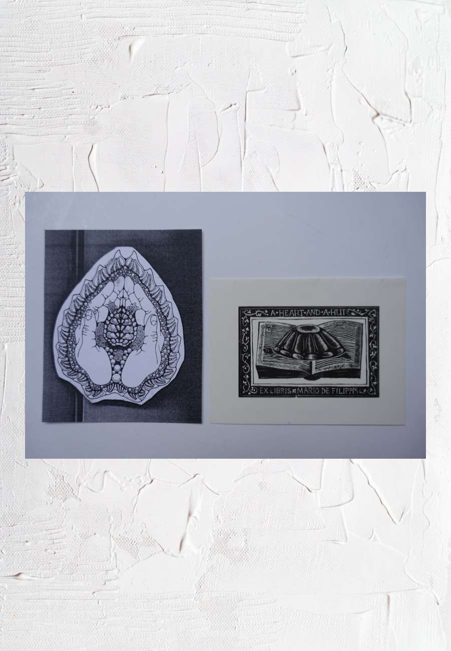 Links: Kopie in der Art eines Ex libris. Rechts: der Eigner besitzt zahlreiche eigene Buchzeichen.
