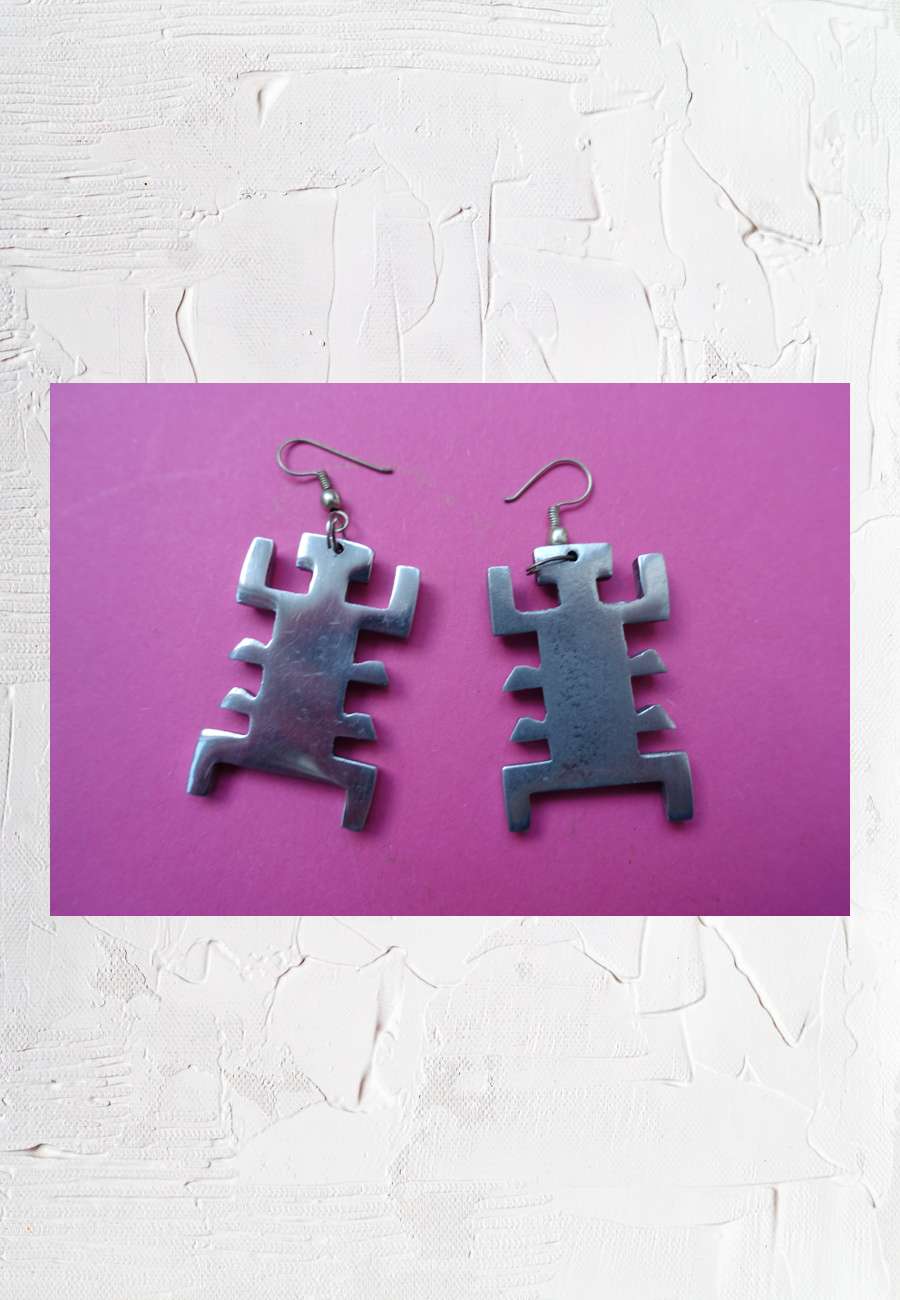 Die zeitgenössischen Ohrringe mit ethnischem Design sind aus Aluminium und stammen aus Neuseeland.