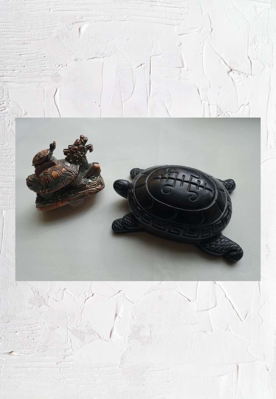 Zwei Objekte aus China, links eine schon lange überlieferte Form mit Drachenkopf (Kupferlegierung), Größe ca. 6 cm. Rechts eine zeitgenössische Arbeit (Keramik), Größe ca. 8 cm.