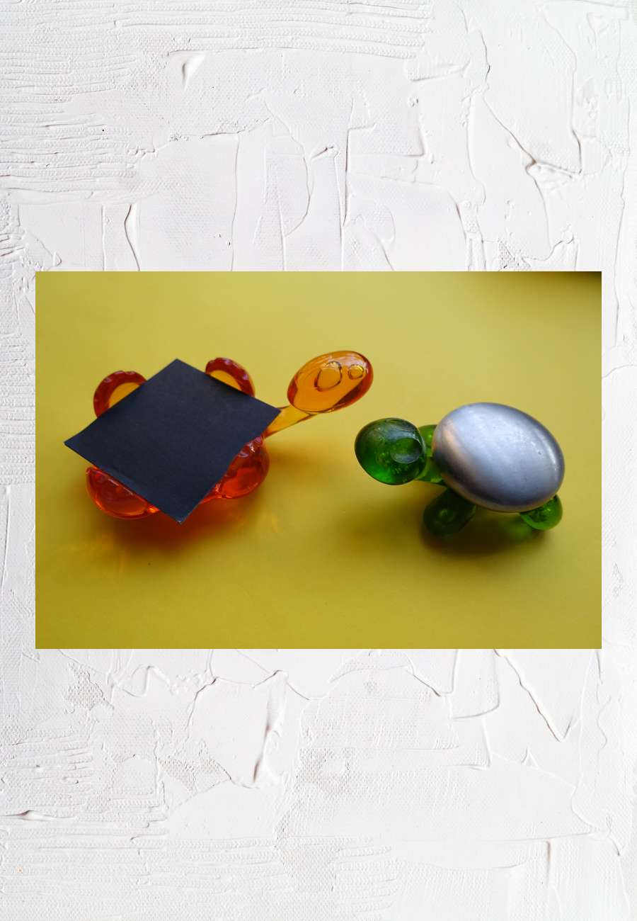 Zwei Küchenobjekte von Koziol, einer Firma für umweltfreundliche Kunststoffprodukte, aus Erbach im Odenwald. Links mit einem eingelassenen Fach für einen Zettelblock (Papier schwarz/weiß), Größe 15 cm., rechts mit einer aufliegenden Metallscheibe, die den Geruch von Zwiebeln oder Knoblauch von den Händen nehmen soll, Größe 10 cm. Von der Idee über das Design, den Formbau und die Produktion wird alles selbst gemacht.