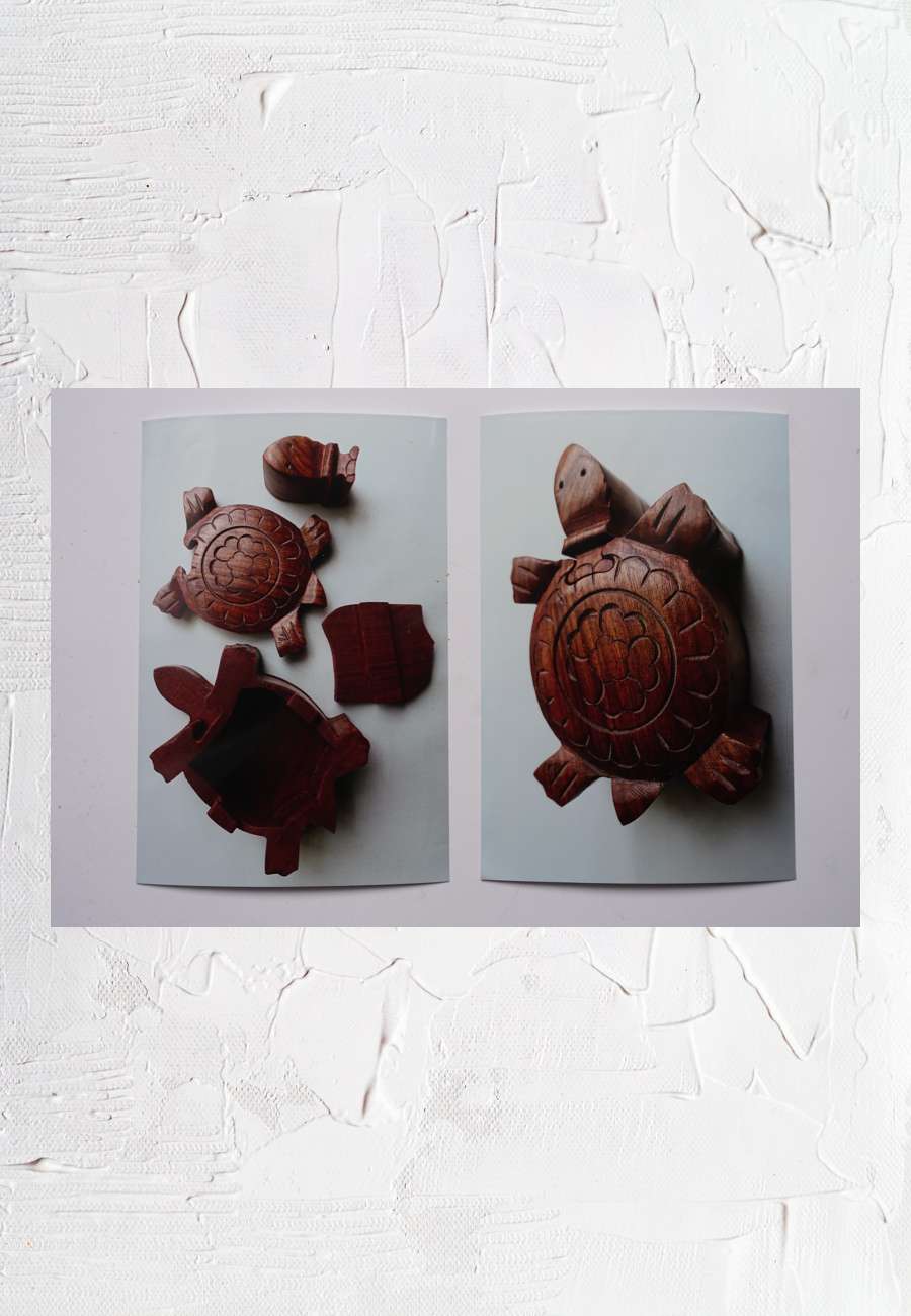 Vierteilige Dose aus Tropenholz, mit einem versteckten Innenfach, z.B. für die Aufbewahrung von Ringen.