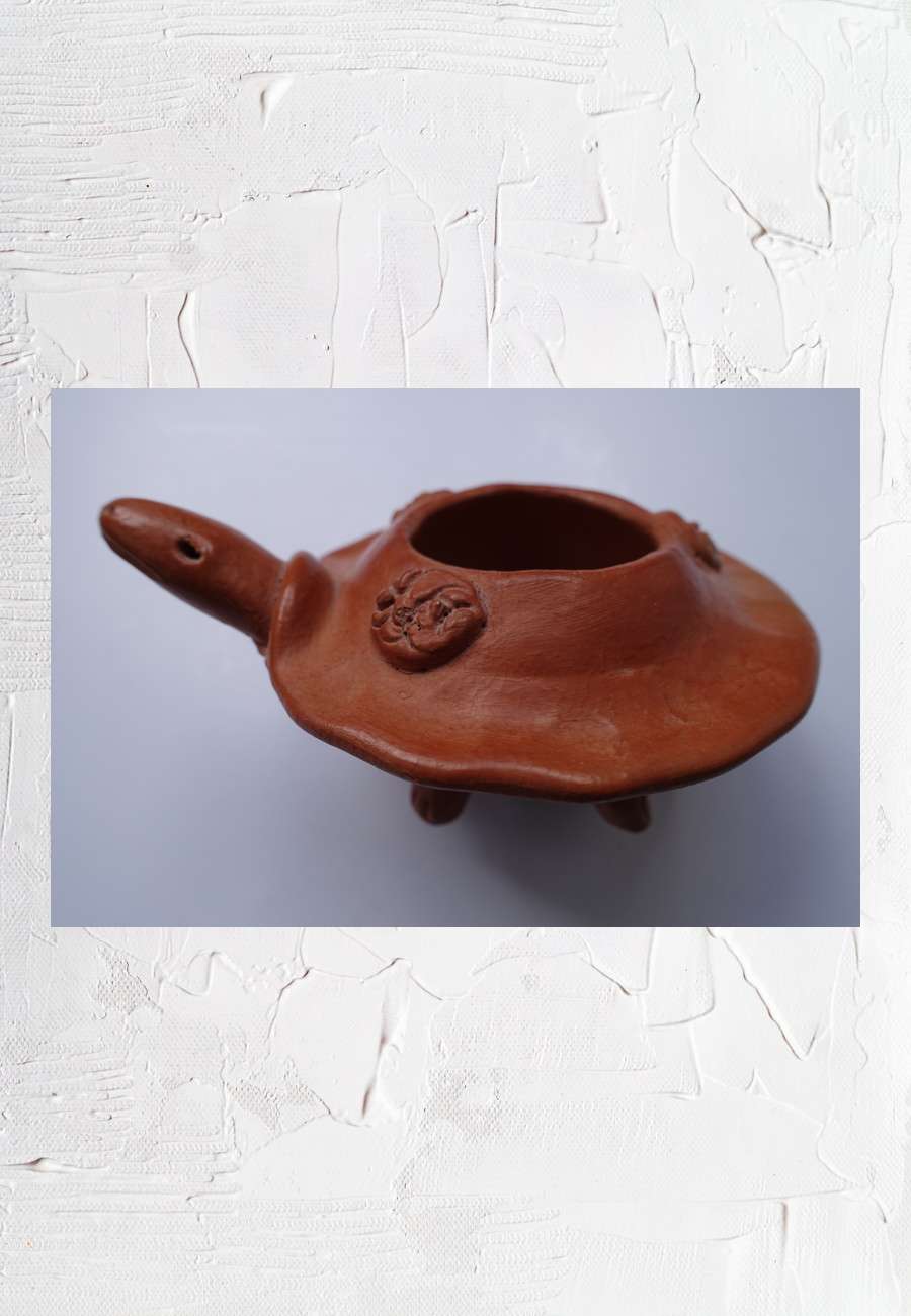 Schälchen aus Naturton (glasiert), handgetöpfert in Guatemala, Größe 12 cm, aus dem Indio Basar in Würzburg, evtl. auch als Pflanzgefäß oder Aschenbecher nutzbar.