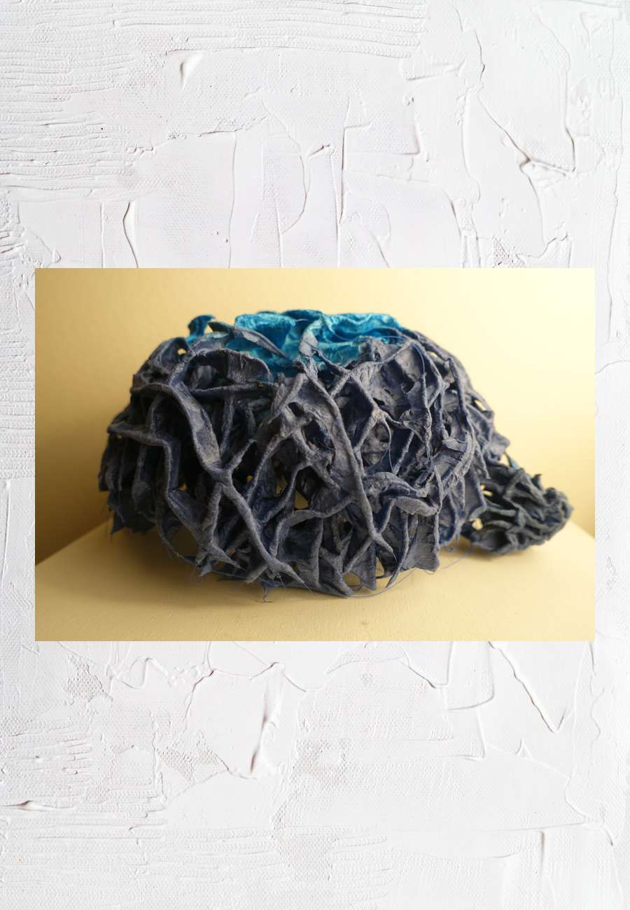 Auftragsarbeit, entscheidend waren die Gestaltung, die filigrane Struktur und das ungewöhnliche Material aus Kozo-Fasern (Rindenbast des japanischen Maulbeerbaums/Broussonetia papyrifera), Unikat, Titel "la Tartaruga", mit sign. Zertifikat, Größe 25 cm (Gewicht 30 gr). Die Faserstränge werden eingeweicht, gekocht, gespült, gefärbt, zu Faserbrei geschlagen und sogar zu großen Skulpturen verarbeitet. Die Schöpferin (Atelier in Gräfelfing) hat Architektur studiert, künstlerische Weiterbildung u.a. bei Prof. Dorothea Reese-Heim, mit Auszeichnungen (1.Preis, Amateras Grand Prix, Sofia/Bulgarien) und Ausstellungen in Italien, Bulgarien, Japan, China und Südkorea. Sie ist Mitglied in der International Assoziation of Papermakers and Paperartists.
