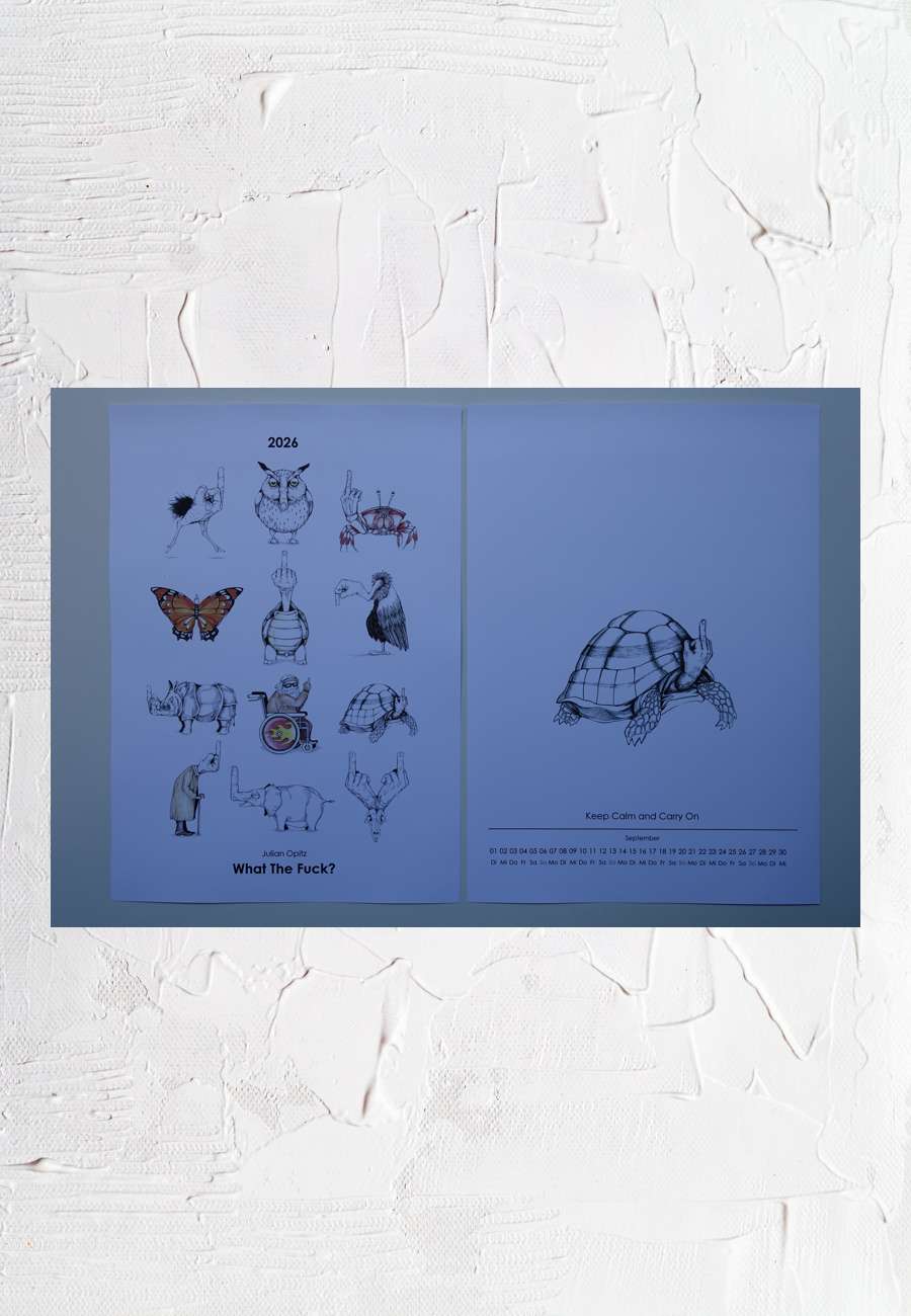 Eine aktuelle Arbeit des Künstlers ist der Kalender für 2026, den er selbst ausdruckt. Titel "What The Fuck", Format DIN A 4. Alle Motive tragen einen eigenen Titel und zeigen Figuren mit "Stinkefinger" (Mai und September = Schildkröte) , ein Teil der Blätter in zarten Farben. Eine große Ausstellung "Karikaturen-