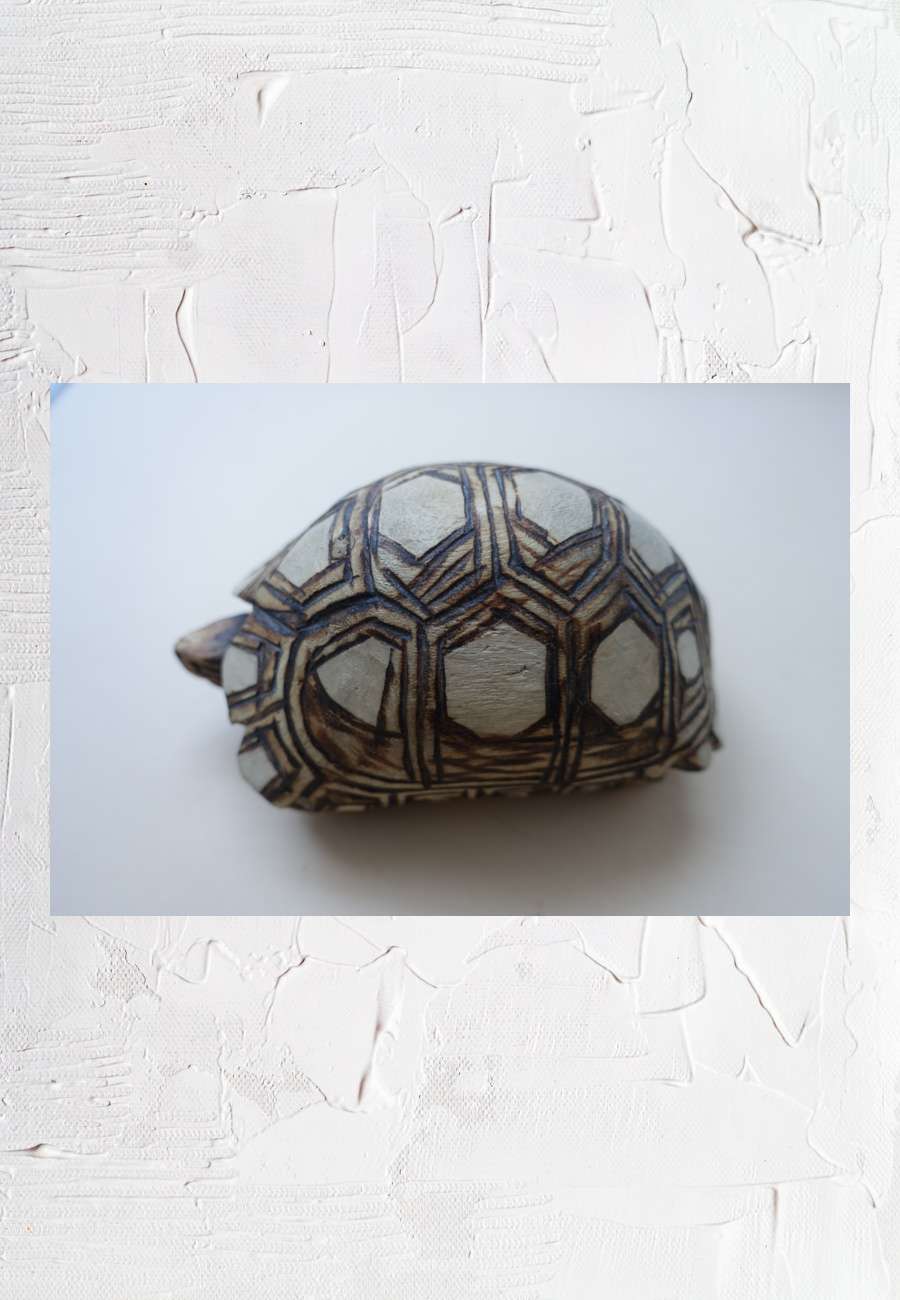 Die handgeschnitzte Skulptur aus hellem Naturholz stammt aus Namibia (südwestliches Afrika), das passende Design wurde rundum geschickt eingebrannt, sign., Größe 20 cm. In gleicher Form und Technik gibt es noch ein zweites Exemplar, sign., Größe 12 cm. Das Land war kurze Zeit deutsche Kolonie (ein Aufstand der Herero und Nama wurde grausam niedergeschlagen), hat eine artenreiche Tierwelt und die Wüste Namib ist namensgebend.