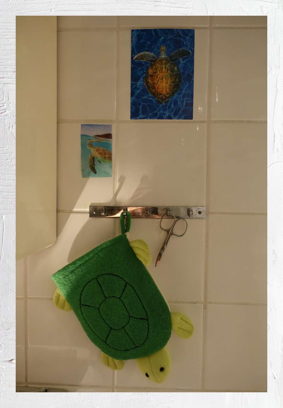 Selbst im Bad finden sich u.a. diese kleinen Motive zum Thema Schildkröten, aber auch ein Graffiti von Loomit.