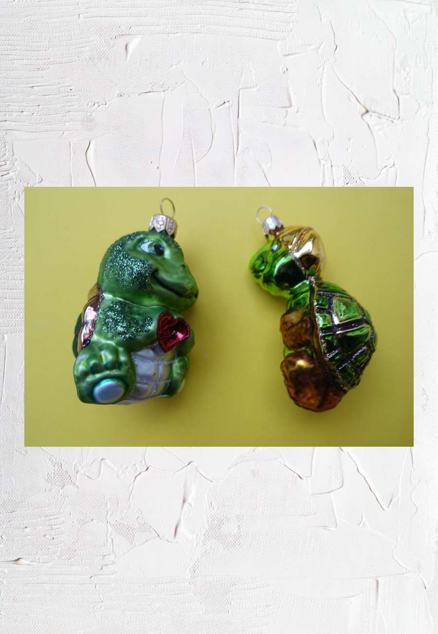 Links: das Objekt ist handbemalt, Größe 10 cm, aus Lauscha (Thüringen). Das Städtchen ist durch das Glasbläser-Handwerk bekannt geworden, es gilt als Geburtsort der Christbaum-Kugeln und es gibt sogar ein Museum für Glaskunst. Rechts: diese Kugel von einem Münchner Weihnachtsmarkt ist ebenfalls mundgeblasen und kommt aus Polen, Größe 10 cm.