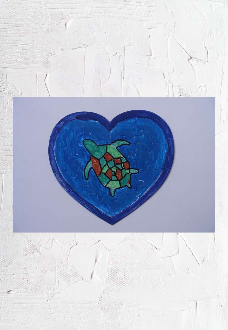 Herz-Puzzle aus 14 Teilen, mit frei gemalter Meeresschildkröte in ihrem natürlichen Element, Größe 18,5 x 16,5 cm, Alter 9 Jahre, ein hübsches Weihnachtsgeschenk.