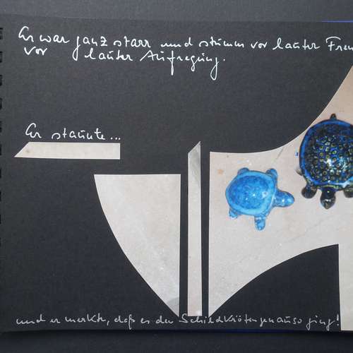 Das Buch und die Drucke sind zu einer kleinen Collage zusammengestellt. Links: V...