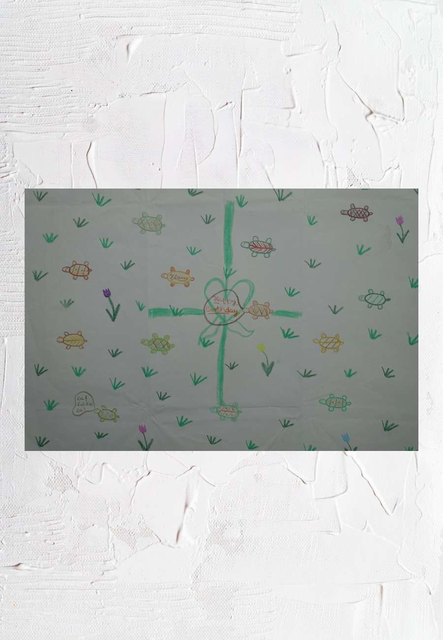 A gift was wrapped in this paper, colored pencils, DIN A 3 format, age 16 years.